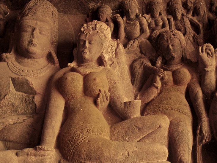 Ajanta and Ellora are the pride of Maharashtra. The rock-cut caves of both these sites are world famous and illustrate the degree of skill and artistry that Indian craftsmen had achieved several hundred years ago. Ajanta dates from 100 B.C. while Ellora is younger by some 600 years. The village of Ajanta is in the Sahyadri hills, about 99 kms. From Aurangabad; a few miles away in a mammoth horseshoe-formed rock, are 30 caves overlooking a gorge, `each forming a room in the hill and some with inner rooms. Al these have been carved out of solid rock with little more than a hammer and chisel and the faith and inspiration of Buddhism. Here, for the Buddhist monks, the artisans excavated Chaityas (chapels) for prayer and Viharas (monasteries) where they lived and taught. Many of the caves have the most exquisite detailed carvings on the walls, pillars and entrances as well as magnificent wall paintings.