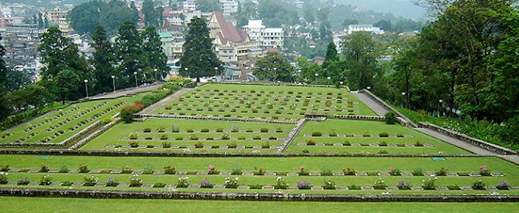 War Cemetery - A symbolic memorial erected as citation for the supreme sacrifices made by the officers and men during the World War II. Each grave is supported by a bronze plaque with a moving epitaph -" When you go home / Tell them of us and say / For your tomorrow / We gave our today."